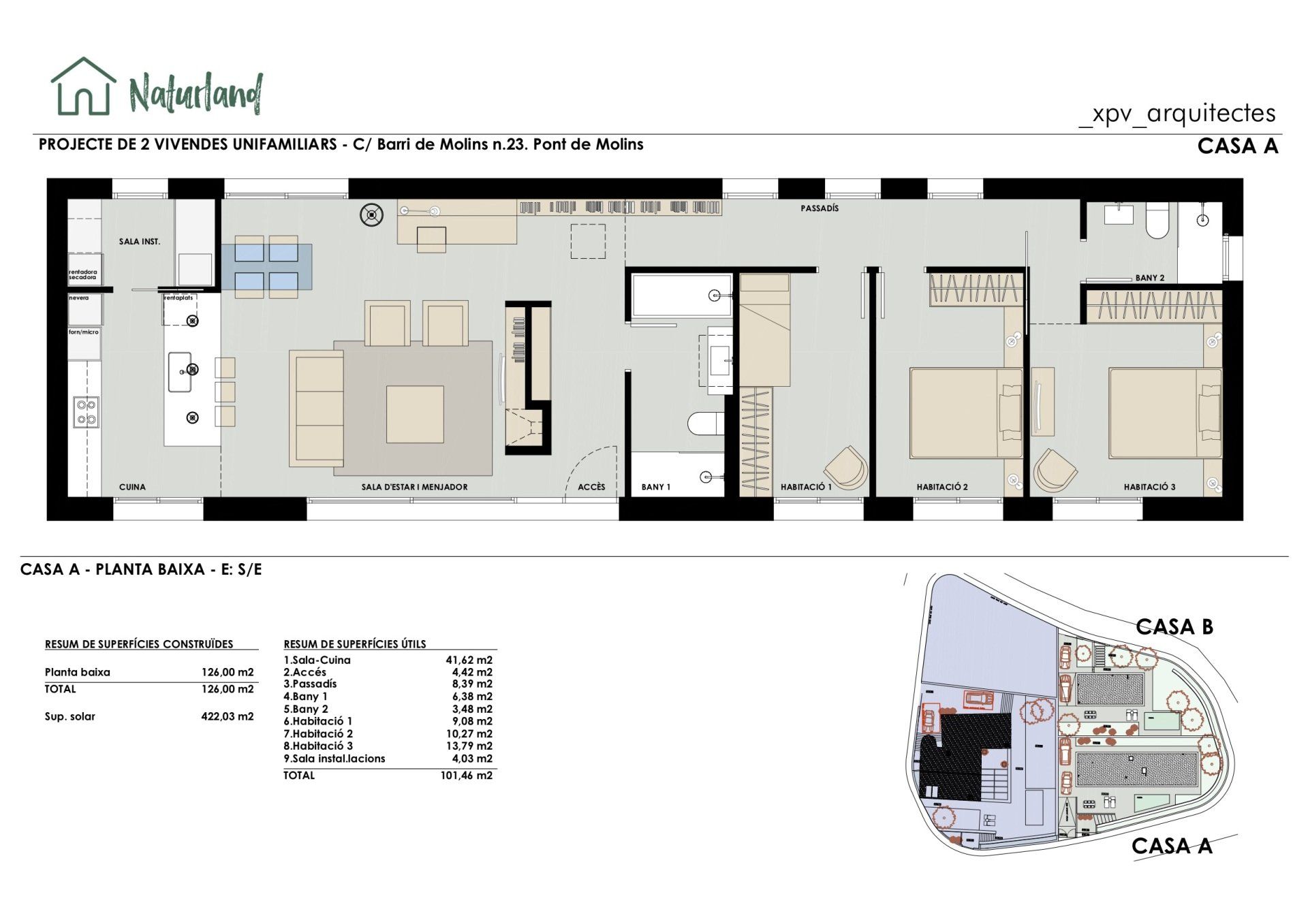 En Naturland nos gustan las cosas bien hechas, por eso te proponemos tu casa ya con el proyecto de decoración incluido. De esta manera puedes hacerte una idea de su distribución, espacios y acabados. El proyecto está hecho por la interiorista Marta Estarriol , que siempre consigue la creación de espacios amplios, agradables, familiares y prácticos, para el día a día de una familia. Y con ese toque diferencial que hará que esta casa, La Masia, sea única y especial.